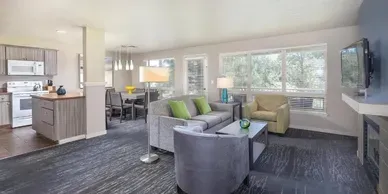 The amazing high-desert country of Central Oregon is wild, scenic and tailor-made for recreation. In the center of it all is WorldMark Eagle Crest. Rock climbing, fly-fishing, hiking, mountain biking, you choose! Smith Rock State Park and the surrounding region boast high cliffs, great rivers and beautiful vistas. You may even catch an eagle plucking a trout from the Deschutes River. After you've finished a round (or two or three) of golf, treat yourself to a massage at the full-service health spa. A little Wild West grandeur will do you good. WorldMark Eagle Crest offers spacious one-bedroom hotel suites and two-bedroom resort suites that comfortably sleep four to six guests. Resort suites feature one king bed in the master, one queen or two twin beds in the guest room and a queen sleeper sofa or Murphy bed in the living area. You will appreciate the privacy of separate bedrooms, the economy of a mini or fully equipped kitchen and a gas barbecue grill on the patio. Plus, a dining area (two-bedroom only), living area and TVs throughout are comforts that would be hard to find in an average hotel.